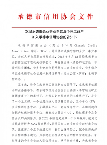 承德市信用协会诚挚欢迎您的加入