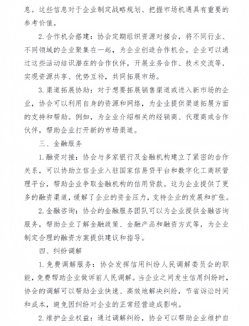 为会员企业提供的服务:企业信用管理咨询服务、承信商城、企业信用管理专业知识培训、商账催收、信用纠纷调解、失信企业信用修复辅导、商务交流