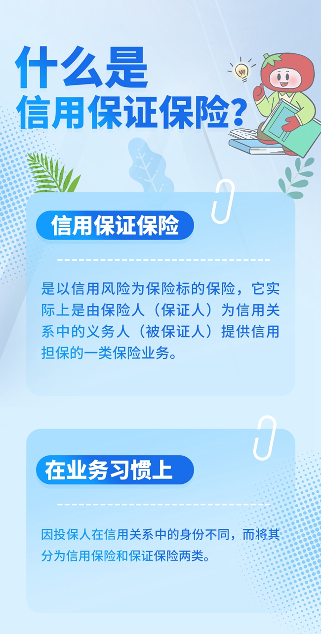 信用保证保险是一种以保证人的信用为基础,以保证机构为载体,为中小微企业和个体工商户提供保证的保险方式。