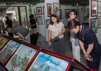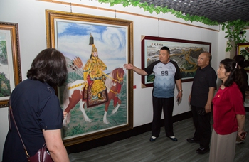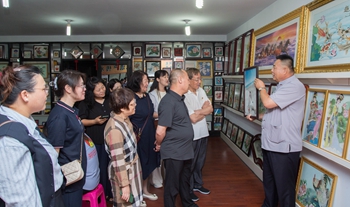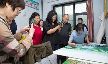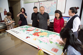 在参观体验环节,郑氏砂艺文化有限公司总经理、承德市信用协会副会长郑铁军首先向参加党课的人员介绍了非物质文化遗产——郑氏砂艺的起源和传承情况,介绍了郑氏砂艺的工艺特点、创新情况和获得的荣誉。大家参观了公司展览馆和博物馆,体验砂画非遗制作,现场感受非遗的魅力与工匠精神。大家被郑氏砂艺独特的工艺、精湛的技艺、唯美的画面所吸引,纷纷驻足端详,认真体验,无不感叹中华文化的博大精深。