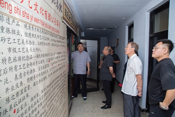 交流座谈期间,郑氏砂艺有限公司工会主席张国新详细介绍了郑氏砂艺的发展历程。郑铁军分享了郑氏砂艺有限公司如何以党建为引领,将党纪要求融入企业管理与文化建设,确保非遗传承工作的规范开展的经验做法。
