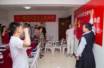 在中国共产党建党104周年之际,7月1日,承德市信用协会组织部分理事单位、党员代表近20人,到兴隆县郑氏砂艺文化有限公司,举办了以“传承非遗文化 赋能党建新程”为主题的专题党课,让党员在感受非遗魅力的同时,深入学习党规党纪,强化作风建设,实现党建工作与传统文化传承的深度融合,让传统文化在党建工作中焕发活力,以文化之魂激活党建新动能。