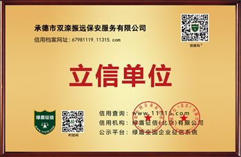 承德市双滦振远保安服务有限公司成立于2014年,注册资金200万元。承德市信用协会会员单位,立信企业,信用等级:AA+。