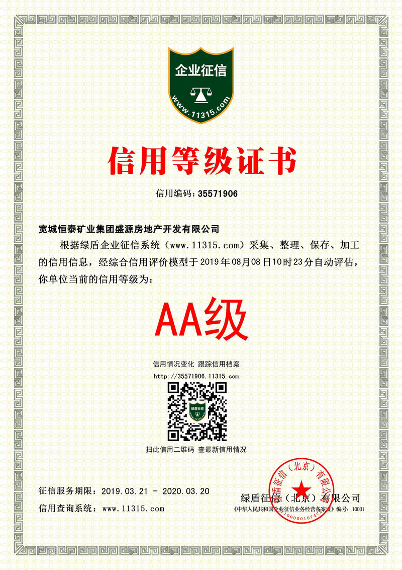 宽城恒泰矿业集团盛源房地产开发有限公司 AA