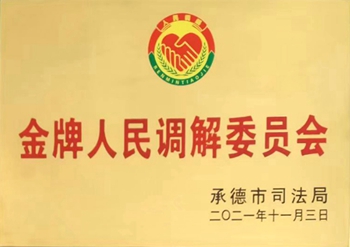 3、2020年3月10日,承德市信用纠纷人民调解委员会经承德市司法局审批备案,6月18日举行揭牌仪式,旨在推动承德市商务诚信建设,帮助民营企业解决信用纠纷等难题。2021年11月3日被承德市司法局评为金牌调解委员会,2021年被河北省司法厅列为改革试点。