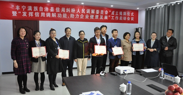 市工商联、市司法局、市审批局、市工信局、丰宁满族自治县政协、县工商联、县司法局、县审批局等单位和市信用协会的领导,以及丰宁部分企业负责人出席了“丰宁县信用纠纷人民调解委员会”成立揭牌仪式暨“发挥信用调解功能、助力丰宁县中小企业发展”工作启动会。