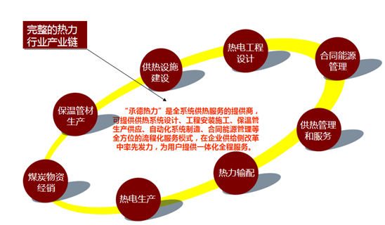 企业依托“承德热力”所拥有热力工程设计、热电工程安装、保温材料生产、智能控制系统集成制造、合同能源管理和物资经销为核心的全行业集成系统性综合服务能力,形成了集团化运作、效能化发展、精细化管理的运营模式,具有了国内行业领先的生产技术管理水平。同时,在传统集中供热的基础上不断开拓创新清洁能源供热市场,通过近几年对清洁能源供热技术领域的探索和实践,以及建设、运营、管理多个清洁能源供热项目,使得“承热能源”在清洁能源领域取得了丰硕的成果和经验。