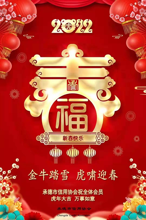 新年伊始,万象更新。承德市信用协会在此谨向全体会员和全市企业经营者致以诚挚的问候和美好的祝福!向所有关心、支持我会发展的社会各界朋友、各级领导、同仁们表示诚挚的谢意和美好的祝愿!