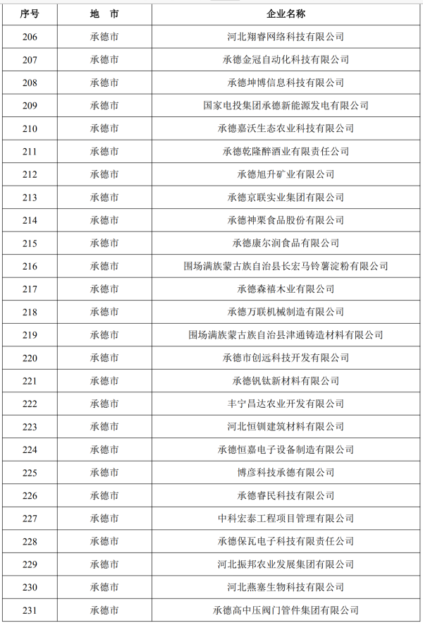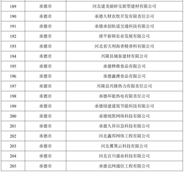 在河北省工业和信息化厅日前公布的《2023年第一批河北省创新型中小企业名单》中,承德久财农牧开发有限责任公司等我市62家企业上榜。