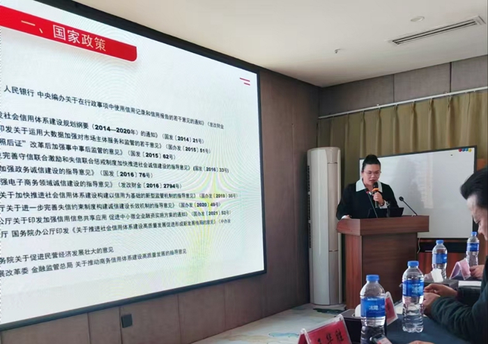 受举办方邀请,承德市信用协会综合部主任别清云做了“以信用服务为基础、助力企业高质量发展”的专题讲座。信用协会发起单位——绿盾企业信用管理咨询服务承德有限公司王彬经理做了“加强企业信用管理、防范企业信用风险”的专题讲座。他在讲座中详细阐述了信用档案建立的重要性、具体的建立流程以及维护方法,深入讲解了如何有效提升企业信用分值,内容极具针对性和实用性,为企业在信用管理方面提供了清晰的思路和操作指南。对参会的中小企业来说,非常及时和重要。
