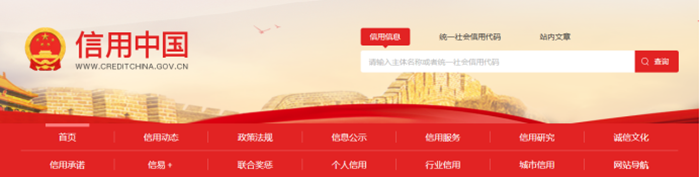 “信用中国”网站是在国家发展改革委、中国人民银行的指导下,由国家公共信用信息中心主办的以信用宣传和信息发布为主的信用门户网站,是政府褒扬诚信、惩戒失信的“总窗口”。网站设有信用动态、政策法规、联合惩戒、信用服务、信用研究、信用知识、信用信息共享等栏目,具备信用信息查询、展示功能。