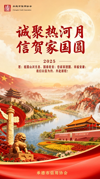金风送爽,红旗漫卷庆华诞;玉露生凉,明月皎洁照团圆。值此国庆76周年与中秋佳节双至之际,承德市信用协会谨以“诚信”为笔,将最深的敬意、最暖的感谢与最诚的祝福,细细写进这封节日问候里 ——