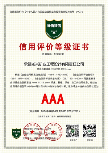 承德龙兴矿业工程设计有限责任公司始建于2005年,拥有冶金矿业设计甲级、建材行业工程设计乙级、工程咨询乙级、水土保持评定二星多项资质,已通过ISO 9001质量管理体系、ISO 14001标准环境管理体系、ISO 45001标准职业健康安全管理三项体系认证。承德市信用协会第二届会员单位。