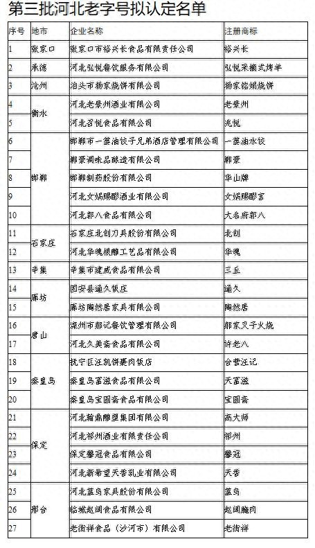 为进一步壮大河北老字号队伍,推动老字号守正创新发展,河北省商务厅会同河北省文化和旅游厅、河北省市场监督管理局(知识产权局)、河北省文物局、河北省商业联合会,按照《河北老字号评价规范》(DB13T5878-2023)《河北老字号认定管理办法》有关规定和要求,在全省开展了2025年河北老字号认定和复核工作。
