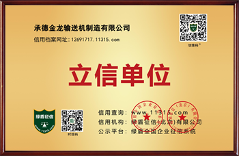 承德金龙输送机制造有限公司创建于1990年,是集项目设计、制造、安装调试、机电一体化的输送机专业生产企业,注册资金5000万元,占地面积12万平方米,现有员工270人,年产值3亿元。承德市信用协会会员单位,立信企业,信誉等级:AAA。