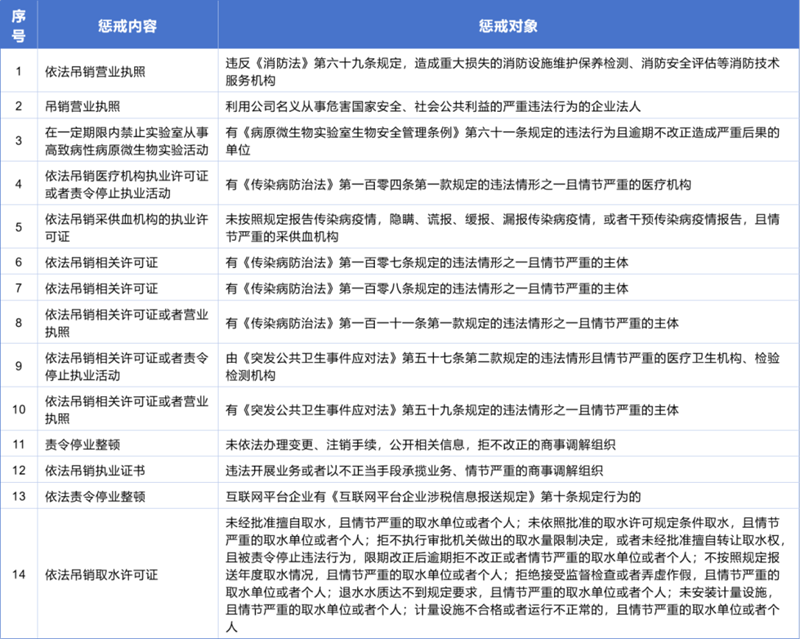 新增了14项惩戒内容: