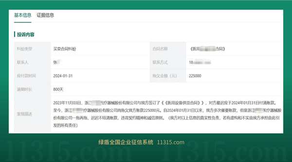 2026年春节期间,该配件厂负责人偶然了解到“绿盾企业征信系统”可以受理“账款拖欠”投诉,便抱着试一试的心态,主动提交了投诉信息,希望以此引起拖欠方的重视。