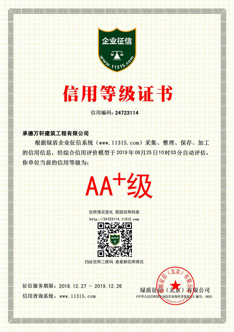 承德万轩建筑工程有限公司 AA+